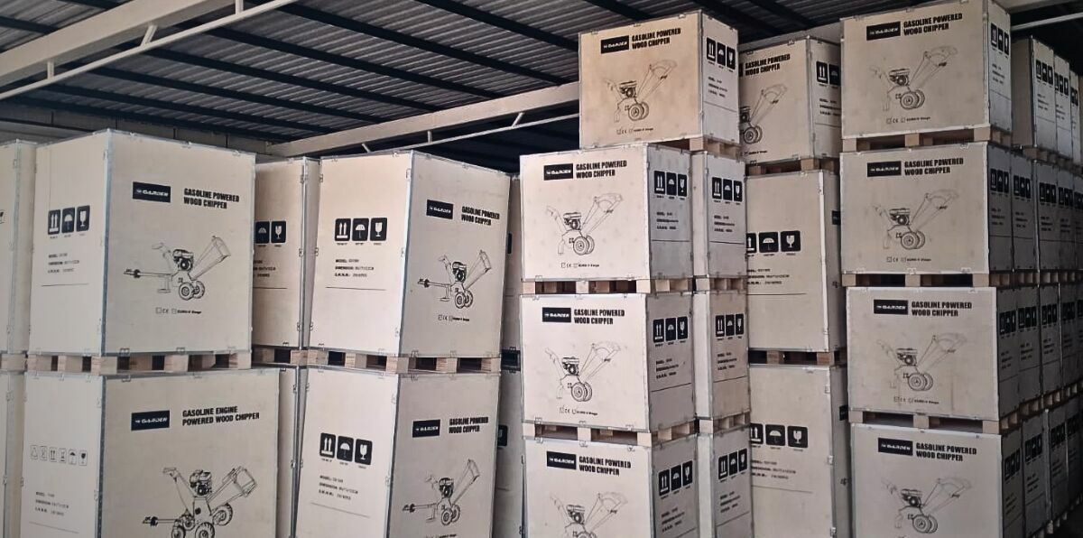 Rębak ogrodowy TB Garden jest dostarczany w szczelnej drewnianej skrzyni, co zapobiega uszkodzeniom w trakcie transportu. Po dostarczeniu maszyny w skrzyni Rębak trzeba skręcić